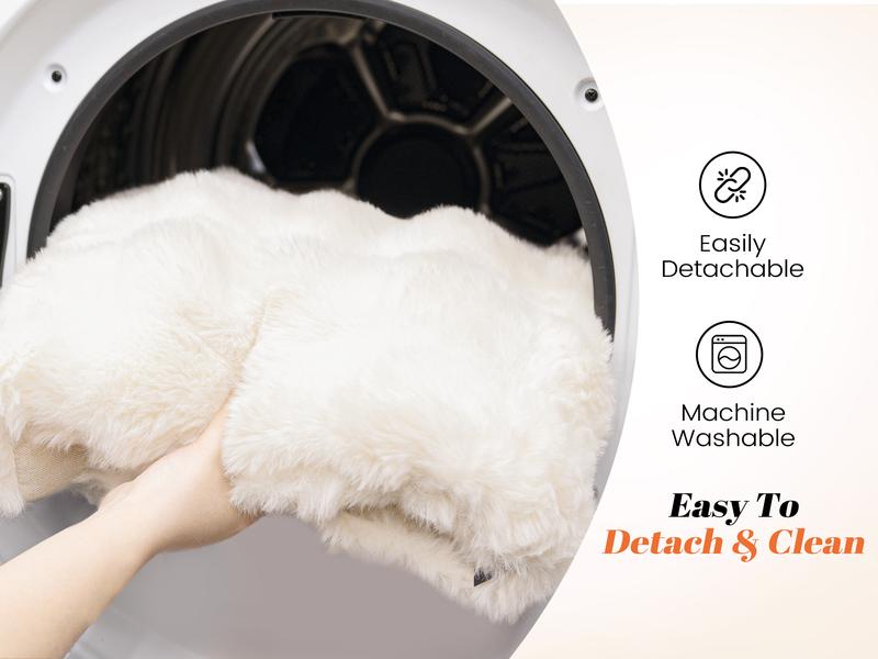 The soft cushion of the pet bed is detachable, not easy to get pet hair on, and easy to clean. It's machine-washable with water below 45°C, air dry, and avoid drying with a dryer. Keep your pet cozy and clean effortlessly.