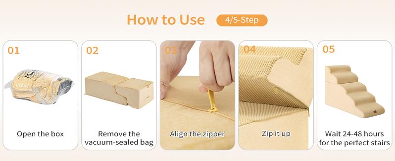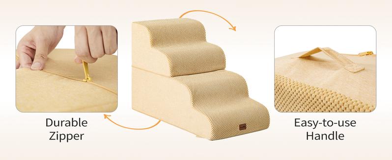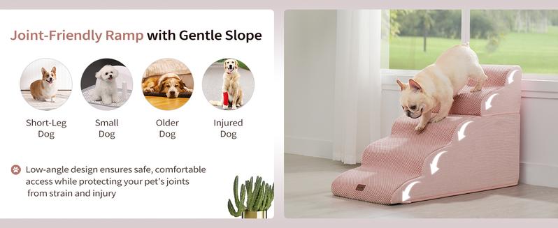 Introducing the Made4Pets Dog Stairs and Ramp for Bed! Perfect for dogs and cats, these stairs provide a safe way for pets to move around. The 3-5 step design ensures a gradual climb, making it easy for pets to navigate higher areas safely. It's an innovative solution for pets climbing high beds.