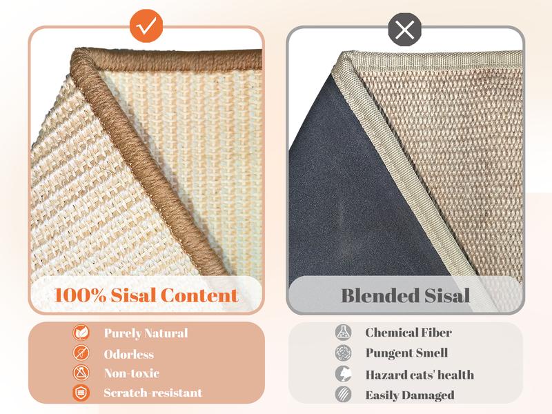 100% Sisal Content: Biodegradable, durable, and free of synthetic materials. Resists shedding—unlike corrugated cardboard.
