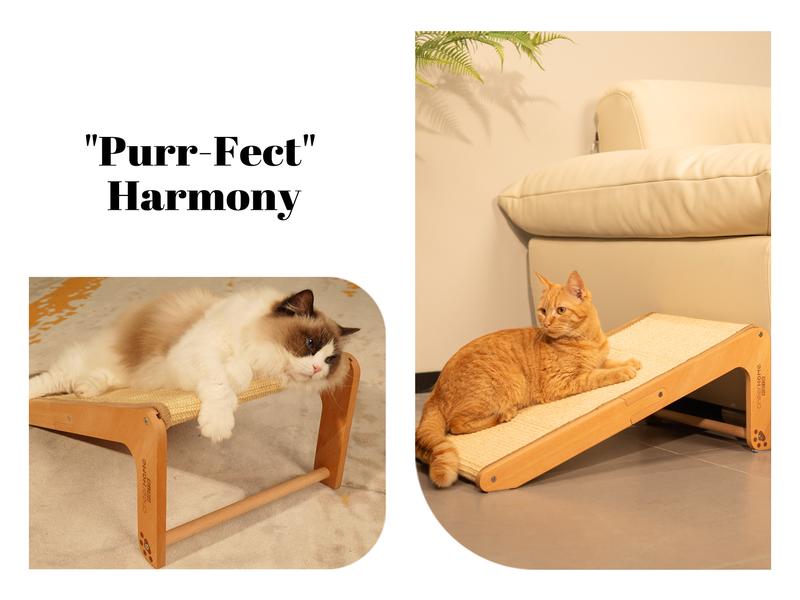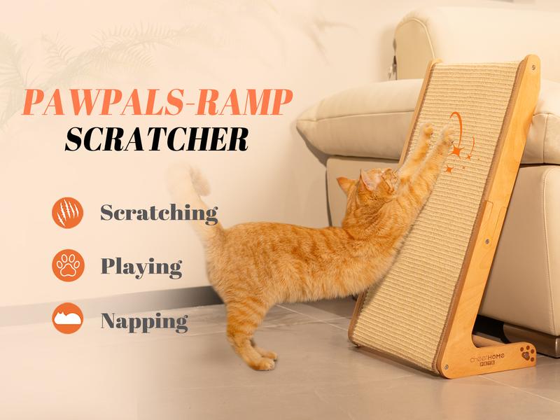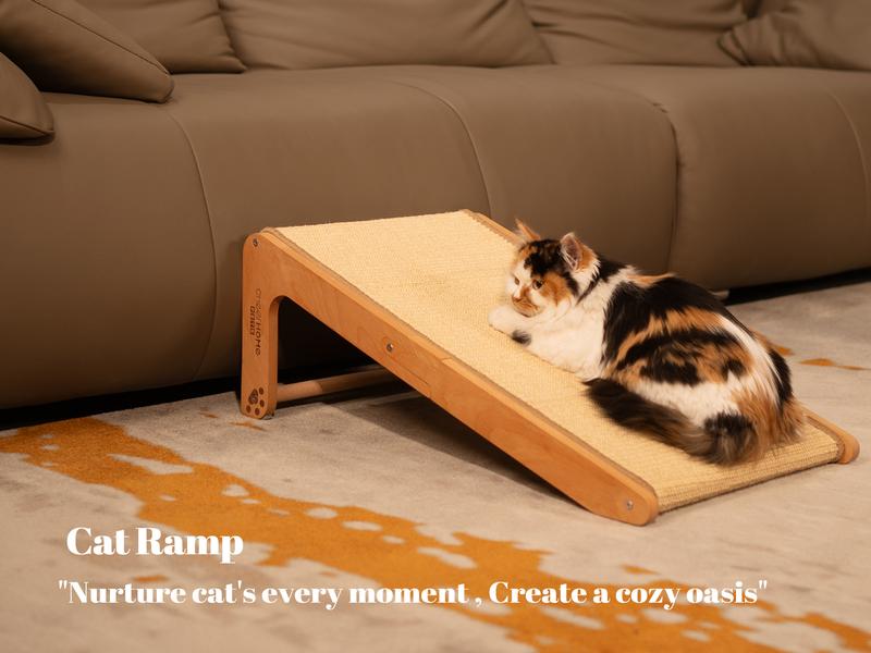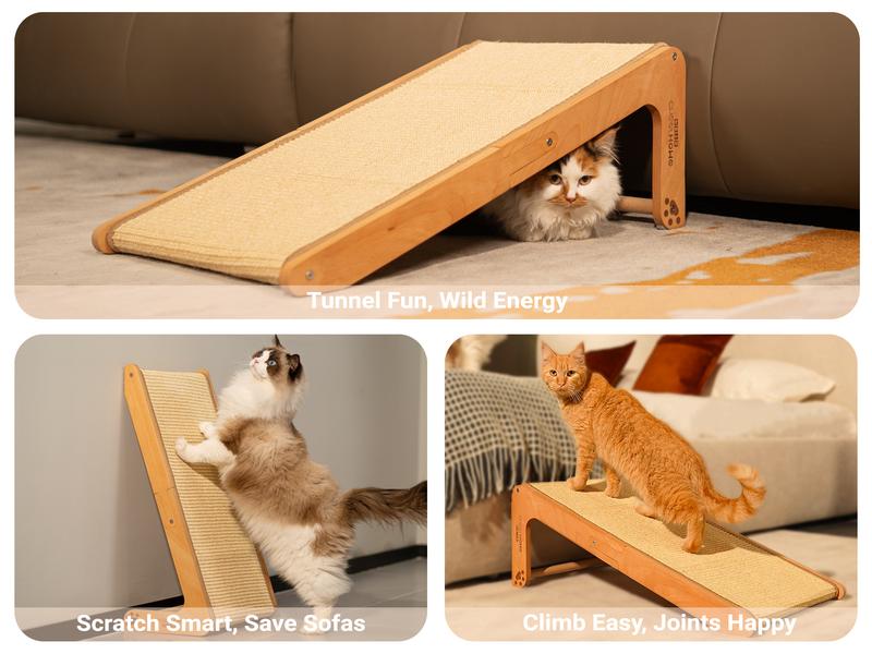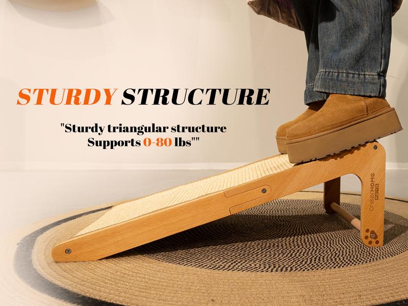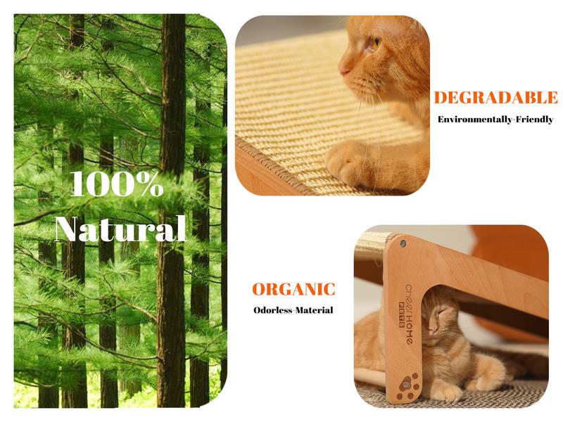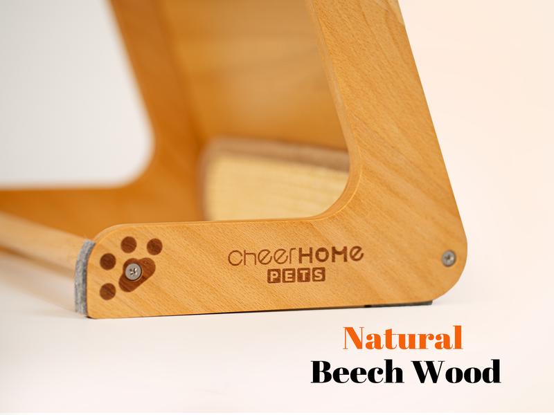 Durable: The cat scratching ramp's frame is made of European-imported beech wood coated with wood wax oil. It is harder than ordinary woods, has a longer service life, and is moisture-proof.